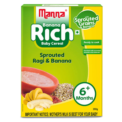 - Manna Banana Rich is made up of sprouted Ragi, sprouted green gram, dehydrated banana powder, vitamins & mineral premix